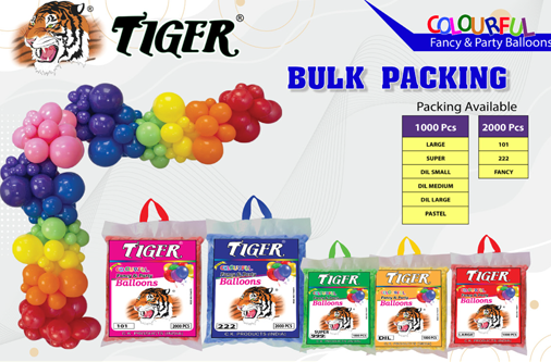 iger Bulk Packing Balloons are designed for large-scale decoration needs, offering dependable quality and vibrant colours in high-volume packs.